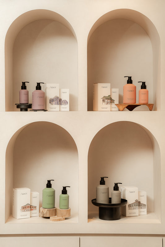 A culture-rich duo wrapped in our shophouse sleeve—featuring the same design as our handcare packaging, inspired by the charm and character of Singapore heritage shophouses.